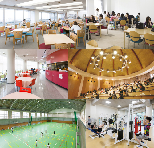 眺望抜群のレストラン、おしゃれなカフェ、女性専用ルームなど、きれいで快適な施設が揃い、キャンパスライフが思いっきり楽しめます。