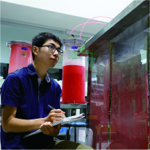 棚橋研究室では、市民生活を守るため、地下水環境の修復について研究しています。汚染の原因となる物質が違えば、浄化方法も変わります。中でも機械油の浄化がもっとも困難とされています。現在は学生や企業と一緒に、工場などの地下にある油で汚れた土を掘り出さなくても浄化できる技術を研究しています。実験装置は、学生自身がつくります。機械いじりや工作が好きな人は楽しいと思います。また最近、急速に普及してきた建設分野におけるDXやIT化について学ぶこともできます。
