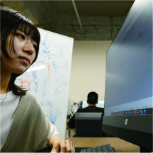 研究室のテーマ、実は今も増殖中。学生や先生の興味、あるいは時代や社会の進化に合わせて、どんどん広がっています。あえて言えば、「モーショングラフィックス」に代表される映像表現の可能性。身近な部分ではデジタル・サイネージ。ショッピングモール、駅などでしばしば見かけるようになった新しい広告媒体です。今や映像表現はビジネスや社会、生活のあらゆるシーンで必要不可欠なものになっています。原田研究室で身につけることができる、ニーズに応じて映像メディアを駆使し、情報を伝える力は無限の可能性を持っています。