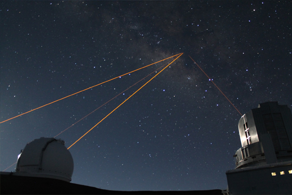 | 研究テーマの魅力 | 研究テーマ1:仲間と共に、銀河系中心ブラックホールを観測しています。私は、その観測データを説明するために、一般相対論を駆使して理論的な予測値を計算する担当です。また、ハワイ島マウナケア山の「すばる望遠鏡」に赴き、仲間と共に観測作業も行います。宇宙を想像し、その想像を詳細に表現するために物理学と数学を駆使します。同時に、その想像の正しさを証明するため満天の星空の下で望遠鏡を駆使し、宇宙を探査します。知的好奇心と未知の探査、これが魅力です。 研究テーマ2:重力と素粒子の現象を統一的に理解するため、4次元の時空を想像し、自分のアイデアを数学的に矛盾なく、かつ様々な実験事実を説明できる形の理論に仕上げられないかと、日々試行錯誤を楽しんでいます。 ![]() ハワイ島マウナケア山頂の望遠鏡群の一部(Photo by Dan Birchall, YouTubue で動画閲覧可能)。右側は日本のすばる望遠鏡、左側はアメリカのケック望遠鏡。いずれも、銀河系中心(天の川にかかる射手座の中にある)を観測している。この写真では、すばる望遠鏡は私たちの研究のための観測を実施中であり、ケック望遠鏡は私たちと同じ研究テーマを追求しているアメリカの研究グループのための観測を実施中である。この写真の撮影時、私はすばる望遠鏡のコントロール室にいた。何故、望遠鏡が夜空に向かってレーザー光線を照射しているのか?気になったら質問に来て下さい。 |
