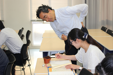 久田教授が担当する授業では、学生各自が言いたいこと、心にあることを、「物語」としてまとめます。テーマは前半が教育や学校、また後半は家族や仕事についてなど。「物語」という、レポートや論文とは異なる文章のつくり方を通じて、自分の思いをどのようにつづれば読む人に伝わるかを学びます。物語の作成にあたっては、前半がグループ内の他の学生から取材して書き起こす方法、後半では自らの内面を見つめて書き起こす方法の2通りにチャレンジします。また、日本語文法に関する講義も織り交ぜて、社会人としての基礎的な、間違いのない文章づくりに役立てます。文章を書くことが苦手な学生も、このような体験を通じて、社会とつながる自己を確立していくことになります。
