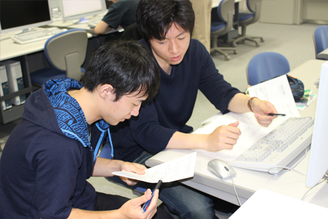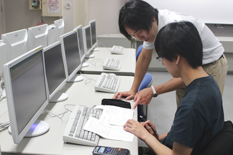 学生はまず入学時にプレイスメントテスト*を受け、習熟度に応じて「数学基礎」または「解析学1」から履修を開始します。少し不安がある学生には、より基礎的な計算能力を高めるための「基礎数学セミナ」も用意しています。大学には普通科、工業科、商業科など、高校においてさまざまな課程を卒業した学生がいます。つまずく傾向は一人ひとりで異なるため、こうした細やかな習熟度別クラスを用意。さらには「一人ひとりの間違いのクセ」を顕在化できるようにレポートの提出が課されているなど、さまざまな配慮がされています。