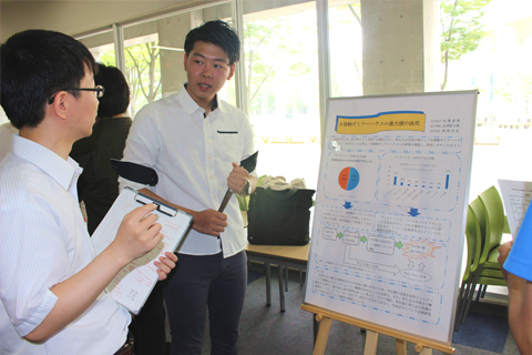 「授業で寝ている…」というテーマでは、最終的にスマートフォンのLINEを使った授業が提案され、経営情報コースの1年生を対象として実際に実験授業を行い、そのアンケート結果では多くの学生が好感触を示しました。