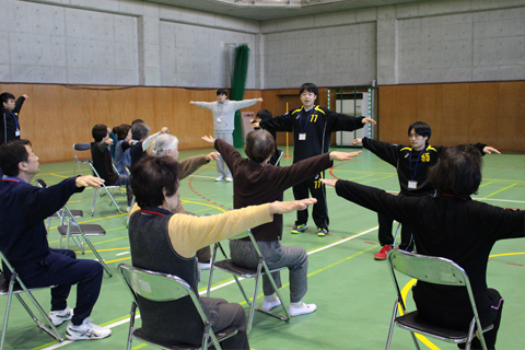 2年次後期の「スポーツ情報実践2」は、名古屋市からの委託を受けて行う、高齢者を対象とした「なごや健康カレッジ」の企画・運営をサポート。参加される高齢者からの評価も高く、参加者から喜びと感謝の手紙をいただいたこともあります。