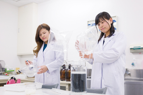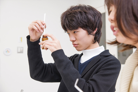 「におい・かおり測定演習」では2年次後期、3年次前期・後期にわたって開講され、においの測定方法について学びます。対象物によって異なるにおいの測定方法の一つひとつを授業と実験を通じて学習し、身に付けた知識と技術は国家資格である臭気判定士取得にも役立ちます。